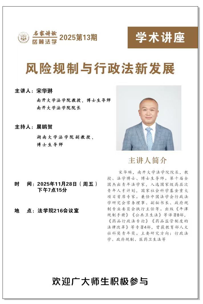 院长,教授、法学博士、博士生导师。第十届全国杰出青年法学家,入选国家级高层次青年人才计划,国家社会科学基金重大项目首席专家。兼任中国法学会行政法学研究会常务理事、副秘书长、政府规制专业委员会执行主任等。出版《牛津规制手册》《公共卫生法》等译著8部,《药品行政法专论》《药品监管制度的法律改革》等专著4部,曾获教育部人文社科奖青年奖。主要研究方向:行政法学、政府规制、医药卫生法等。
