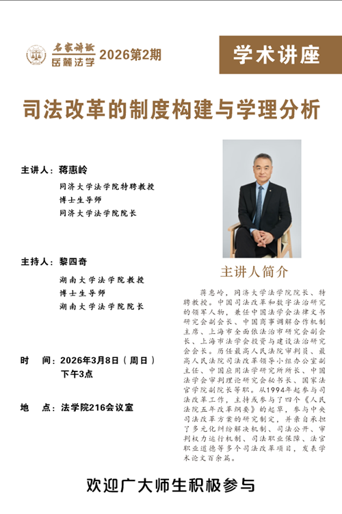 “岳麓法学名家讲坛”2026年第2期在91吃瓜