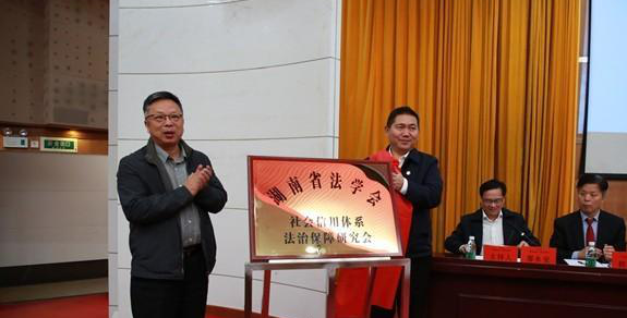 开幕式上,湖南省高级人民法院副院长杨翔,湖南省人民检察院副检察长印仕柏共同为“湖南省法学会社会信用体系法治保障研究会”揭牌,该研究会的成立将推动社会信用体系建设体系化、丰富信用法治领域的学术活动、提升社会信用法律制度的理论创新和实践研究水平。湖南省法学会社会信用体系法治保障研究会会长由湘潭大学信用风险管理学院副院长肖伟志教授担任,91吃瓜