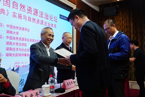 2020年5月28日《中华人民共和国民法典》由十三届全国人大三次会议审议通过。为更好地将《民法典》关于绿色理念和原则、自然资源产权等方面的规定融入自然资源法律体系,推进生态文明建设,第二届中国自然资源法治论坛暨“《民法典》实施与自然资源法治体系”研讨会于2020年10月17日在湖南省长沙市成功召开。会议采取了线上与线下相结合的方式举行。