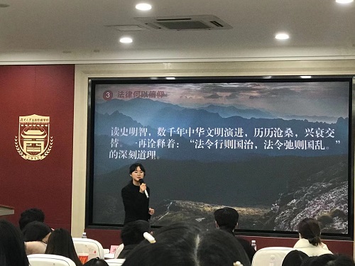回顾历史,清末沈家本主导修律运动,随着清王朝的覆灭无疾而终;民初孙中山制定《临时约法》,在军阀的混战中形同具文。无数的历史都在向我们诠释着“法令行则国治,法令弛则国乱”的道理。展望未来,曹炉丹同志向在场师生呼吁:在“两个一百年”目标的历史交汇期,在“世界百年未有之大变局”中,我们要不断培养法治信仰,不断加固法治堤坝,方能在沧海横流中,奔涌于民族复兴之浪潮。