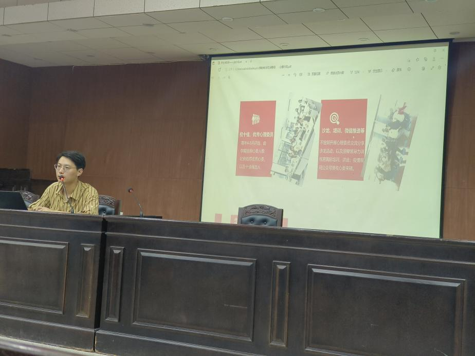 于2022年9月14日在模拟法庭开展新生心理工作培训会。本次培训会由2022级本科生辅导员曹晓军老师主讲,2022级各班心理委员、寝室长及其他学生干部参加。