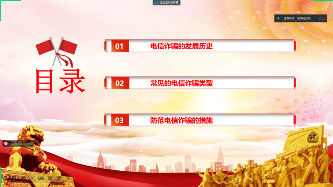 首先,会议详细介绍了各种类型的电信诈骗,如虚假中奖诈骗、冒充公检法诈骗、钓鱼网站等。这让我意识到电信诈骗手段繁多,而且诈骗者也在不断更新手法,给人们带来了极大的安全隐患。