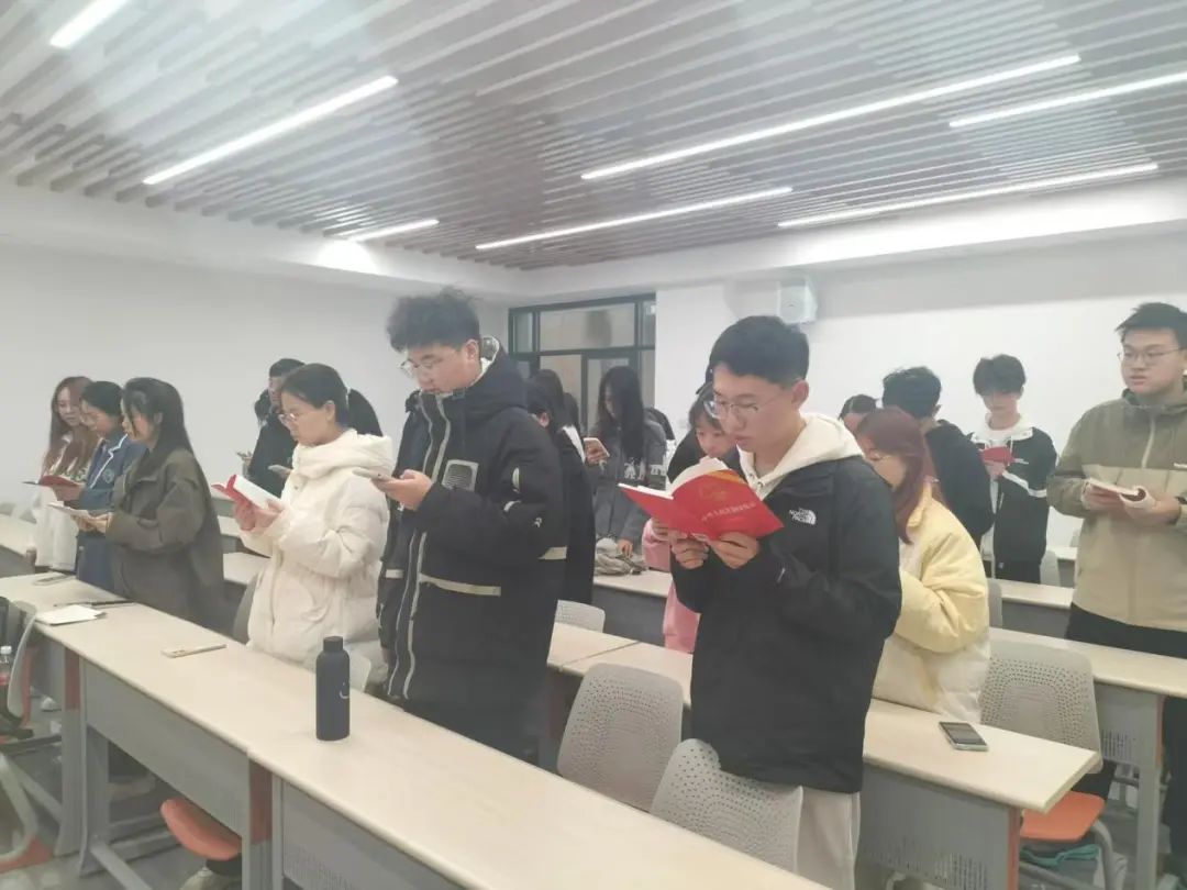 升旗仪式结束后,在教育部领导的领读下,我院学生与来自全国各地的师生们共同齐声诵读宪法条款,场面庄重而热烈,声音铿锵而有力,回荡在教室里。宪法作为我国的根本大法,在我国法律体系中处于最高地位。通过诵读宪法,同学们不仅增进了对宪法知识的了解,更真真切切地体会到了宪法的权威性,在心中牢固树立宪法意识。