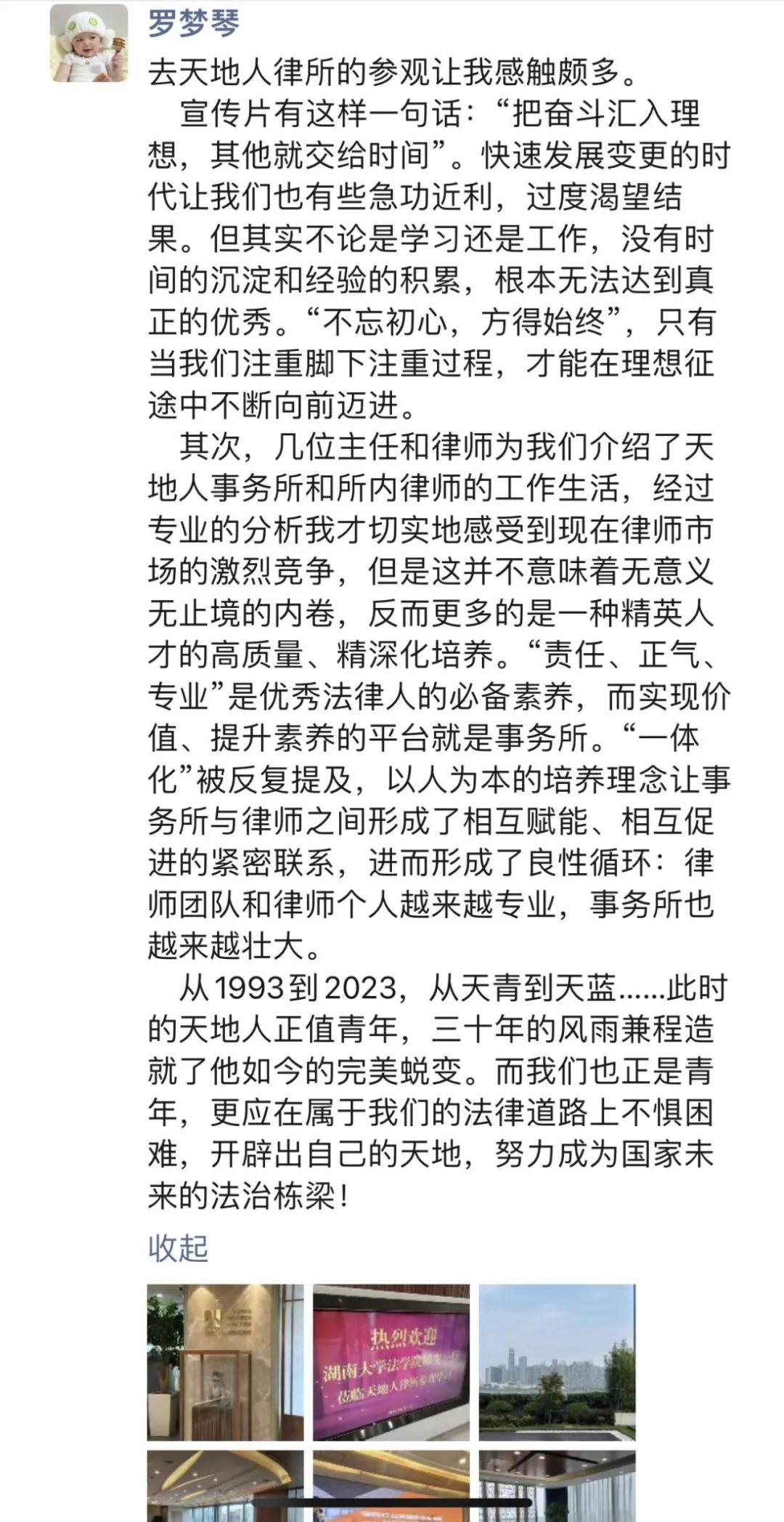 天地人给同学带来的不只是信息的拓展,更是对青年律师的赋能与鼓励。“鹰隼试翼,风尘翕张;奇花初胎,矞矞皇皇”不只天地人的青年律师,更有正在学习的同学都正值青春。这腔青春难凉之热血,正是未来中国法治的栋梁。