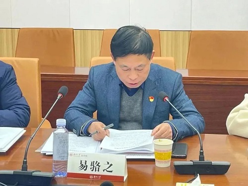 在院楼216会议室召开2022年度处级党员领导干部民主生活会。校党委副书记、纪委书记曹升元、学校处级党员领导干部民主生活会第四督导组戴谋元、潘磊老师来院指导。院党委书记易骆之同志主持会议,学院班子成员黎四奇、罗英、喻玲、湛建云、蒋海松及组织员马启明参加会议,无党派人士王文胜副院长列席会议。